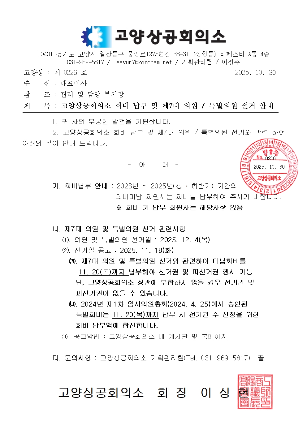 | ▲ | 고양상공회의소 제7대 의원 및 특별의원 선거 시행 안내 |